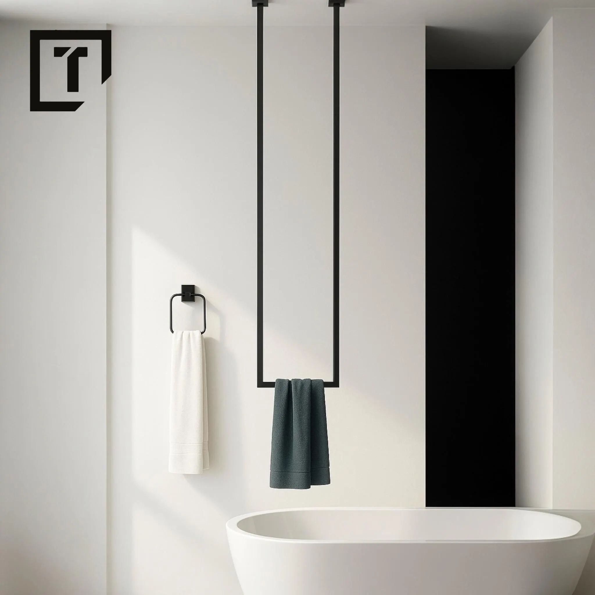 Metalowy wieszak na ręczniki montowany na suficie: wieszak na ubrania malowany proszkowo