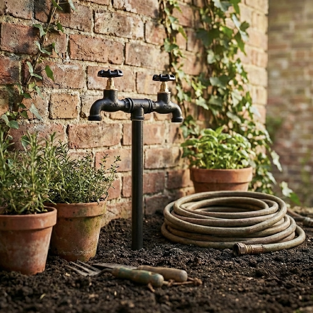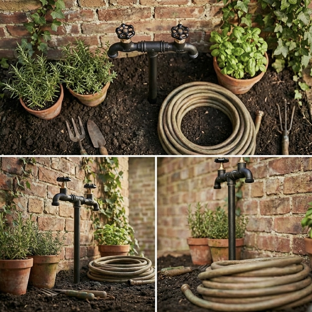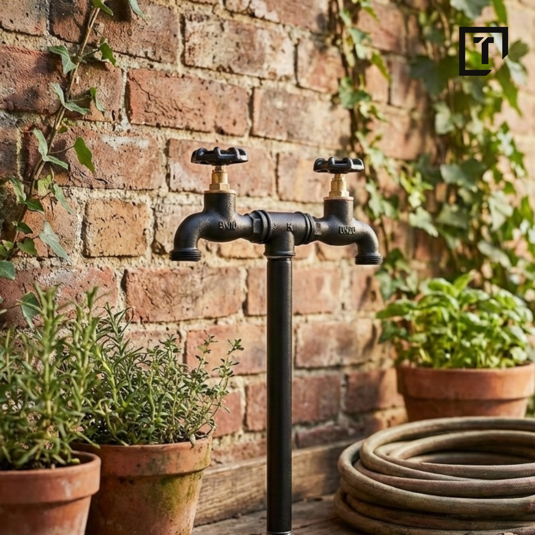 Nierdzewny Podwójny Kran ogrodowy Słupek wolnostojący hydrant z rury LOFT