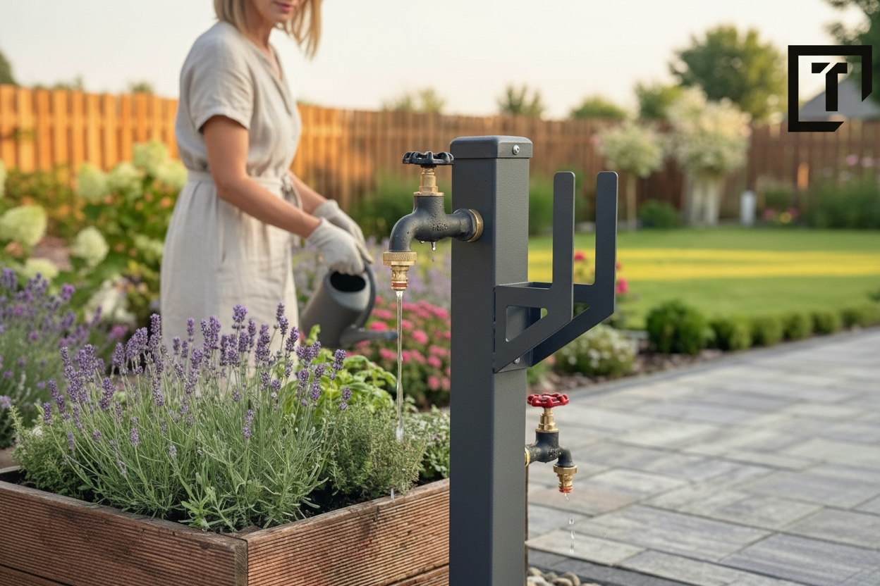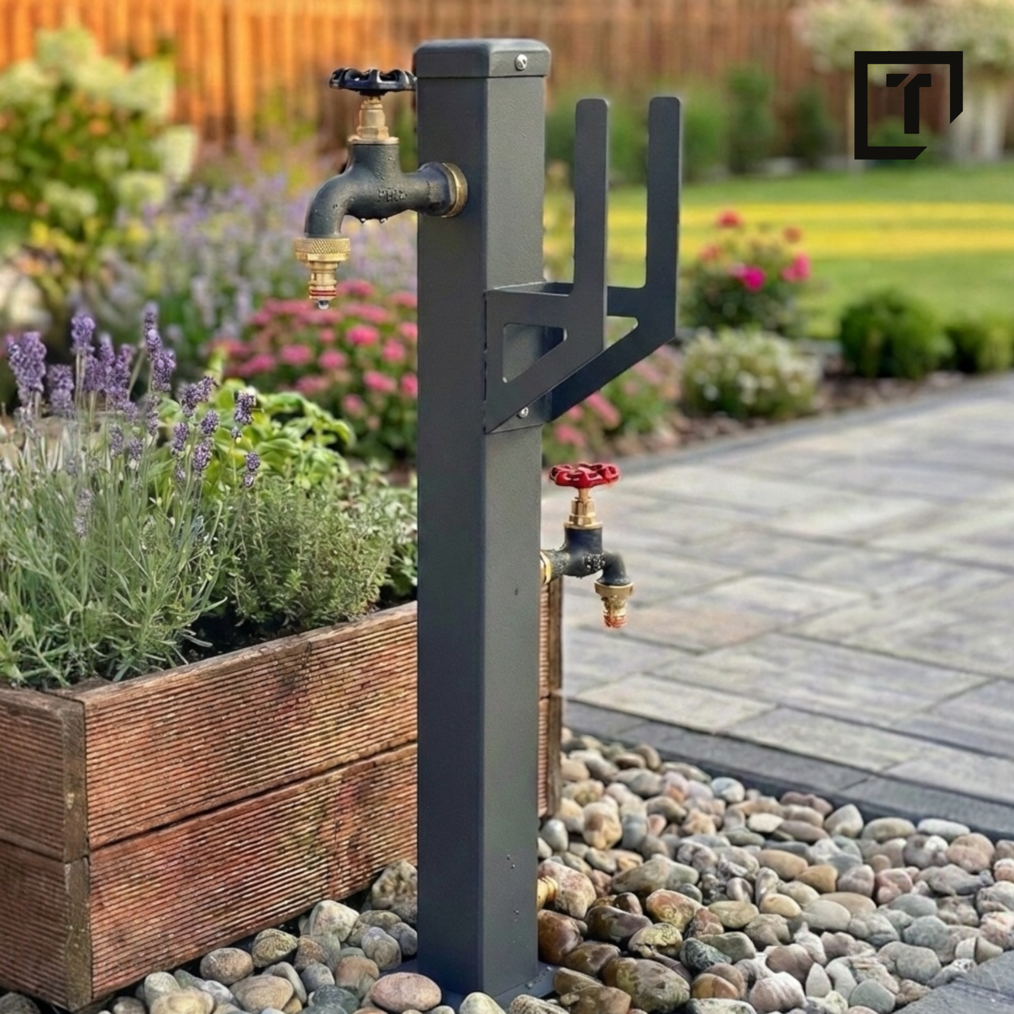 Podwójny ogrodowy z szybkozłączem wodnym | Słupek wolnostojący | hydrant | Słupek ogrodowy | Kran zewnętrzny
