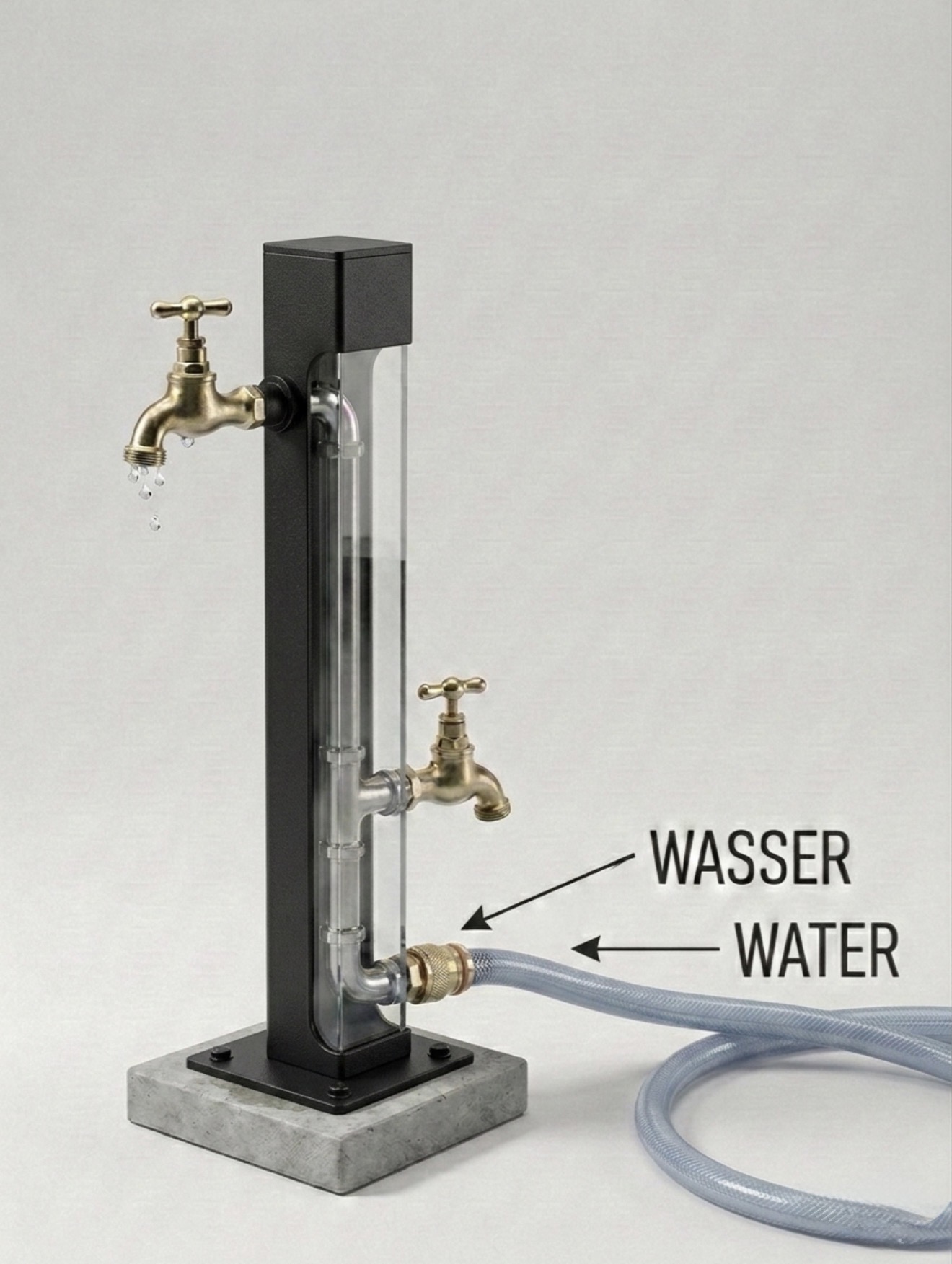 Woda do głównego ( górnego) kranu doprowadzana jest po przez przyłącze wody widoczne na zdjęciu. ( Mosiężny Dziubek )