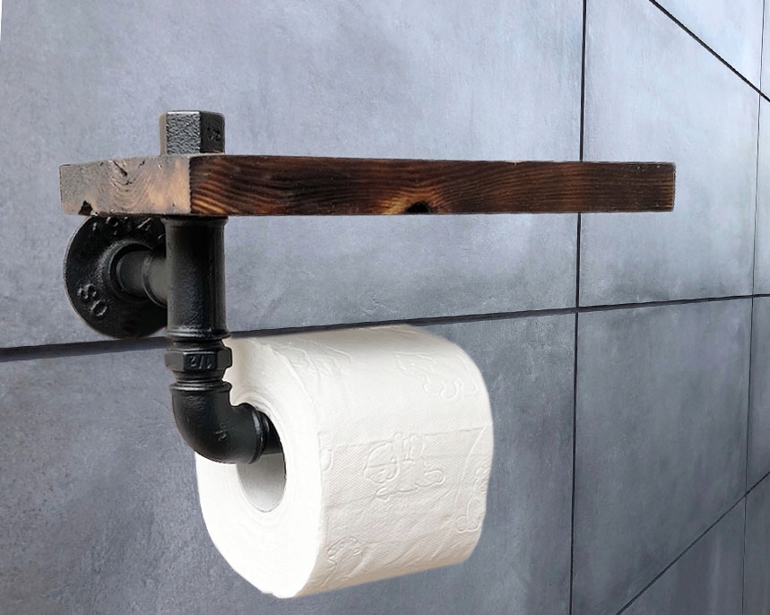 Uchwyt na papier toaletowy z drewnianą półeczką